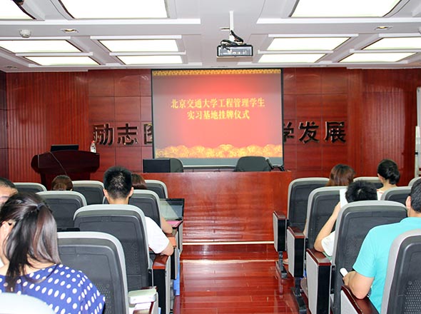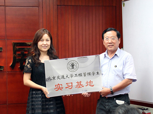 2014年5月29日下午兩點,在公司舉行了北京交通大學(xué)工程管理學(xué)生實習(xí)基地掛牌儀式,公司董事長周和生先生以及北京交通大學(xué)工程管理學(xué)院郭教授出席了此次儀式并發(fā)表了講話,并由公司總經(jīng)理李飛對學(xué)生們進(jìn)行講解和演示“全過程投資管理及審計系統(tǒng)平臺”操作介紹,得到了學(xué)生們的一致認(rèn)可。