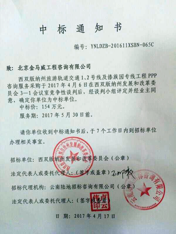 2017年4月,我公司成功中標(biāo)西雙版納州旅游軌道交通1、2號線及傣族園專線工程PPP咨詢服務(wù)采購項目。